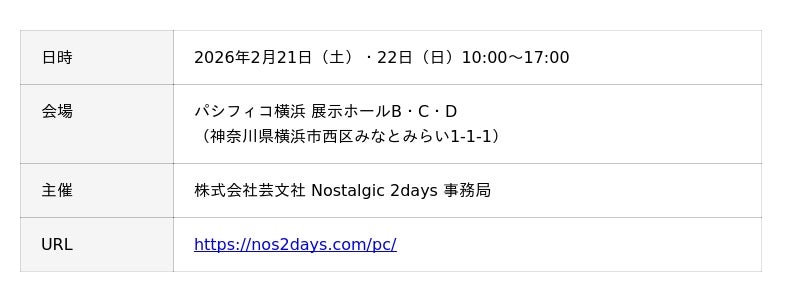 ■Nostalgic 2days 2026 開催概要