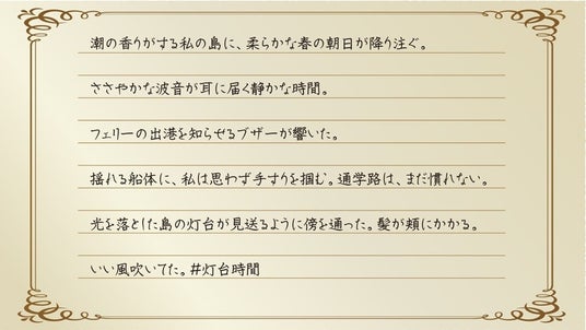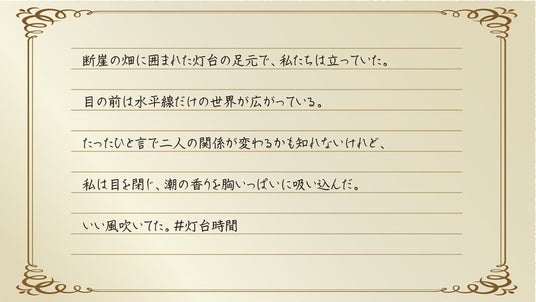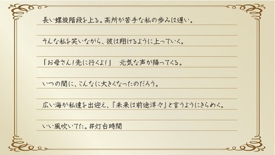 「いい風吹いてた。#灯台時間」X投稿コンテスト 応募総数476点の中から入賞作品14点決定!