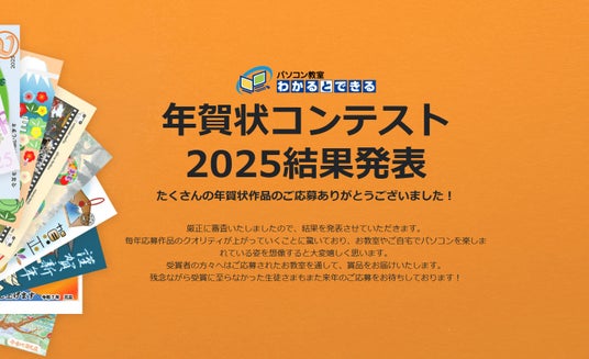 「パソコン教室わかるとできる」は、全国にパソコン教室を展開し、延べ100万人以上の方が受講しているパソコン教室です。年賀状作成以外にも、パソコンを基礎から学習できる講座や、MOS資格取得にむけた講座、スマートフォンの操作を学習できる講座など、幅広いカリキュラムやイベントを実施しています。