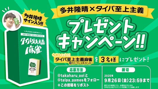 麻雀界のカリスマ多井隆晴プロが、テレビ・SNSで話題沸騰の『タイパ至上主義 麻雀』に挑戦!9月11日より対戦動画を公開&サイン入り商品が当たるキャンペーンを実施!