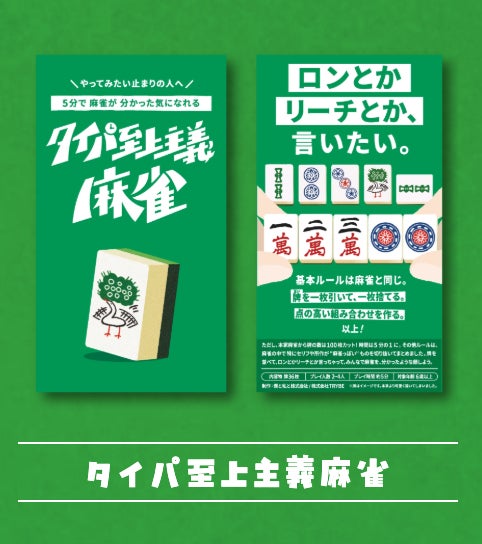 第1弾の『タイパ至上主義麻雀』では、牌の数を100枚カット。難しいルールは一切なく、全員あがれて、2人からでも遊べることから、SNS上で「たった5分で麻雀の醍醐味が味わえる!」と多くの反響を呼びました。