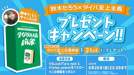 さらに、動画公開を記念し、出演プロの直筆サイン入り『タイパ至上主義麻雀』が当たるプレゼントキャンペーンを 9月12日(金)~9月26日(金) の期間限定で開催いたします。