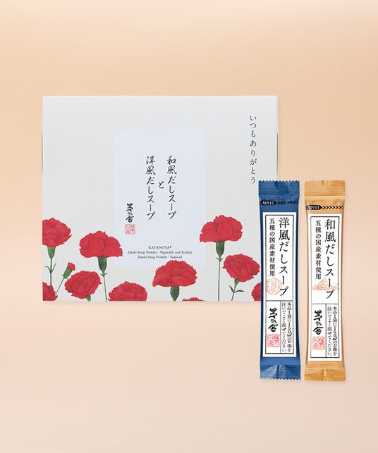 母の日限定、カーネーション柄デザインの「茅乃舎だし」を始め、お湯を注ぐだけでお召し上がりいただけるフリーズドライの味噌汁・だしスープなど、お母さんへの感謝の気持ちを込めた商品をラインナップいたしました。2025年の母の日は、5月11日(日)。今年の母の日は、お母さんご自身の食生活を気にかけてみませんか。離れて暮らすお母さんに贈ってみたり、久しぶりに帰って料理を振る舞ってみたり。茅乃舎では、さまざまなシーンでお役立ていただける商品をご用意しております。
