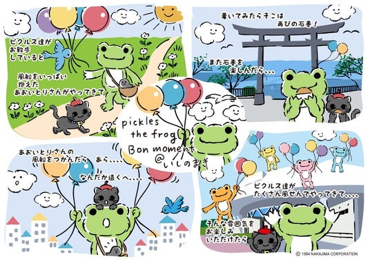 大人気のビーンドール(ぬいぐるみ)は、これまでに発売された全種類となる600体以上を展示するほか、生活雑貨・ファッション雑貨グッズの展示や、同時開催「Bon moment(ボンモモン)@いしのまき」として、かえるのピクルスと石巻との関わりをご紹介するコーナーも登場します。また、会期中はスタンプラリーやコラボメニューなど楽しい連動イベントも盛りだくさん!かえるのピクルスをもっともっと好きになっていただける展覧会です。