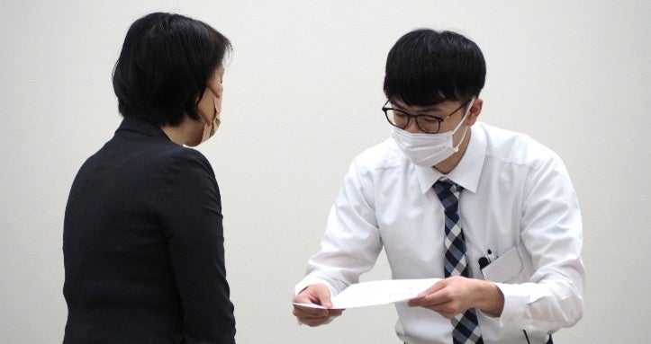 医療関連部門では、ファイナリストが200床以上の病院の初診受付担当者となり、初めて受診する患者様に対して、紹介状の取り扱いや選定療養費制度の仕組み等、国や医療機関で定められた制度背景をふまえ、患者様にあわせた説明を行い、患者様が納得してかかりつけのクリニックへ相談できるよう促す対応のロールプレイを実施しました。