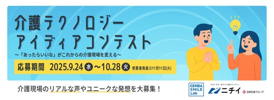 当社は、2025年4月に研究組織 「GENBA SMILE Lab(ゲンバ スマイル ラボ)」 を立ち上げ、介護人材不足の克服および現場負担の軽減に繋がるテクノロジー活用を検討しています。本コンテストは、「介護の日」を迎えるにあたり開催するもので、多くの方々に介護を身近なものとして捉え、考えていただくきっかけづくりを目的としています。現場や生活者のアイディアを広く募り、介護現場が抱える課題の解決やサービス向上のためのヒントとして活かしてまいります。