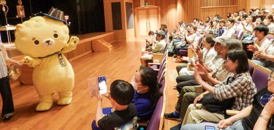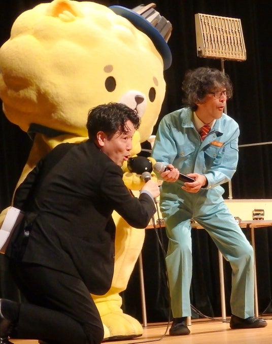 ほや丸がゲスト出演したのは、ユニークな楽器開発などで知られるアーティスト明和電機・土佐社長による「全国47都道府県ひとりコンサート 明和電機★UMEツアー2025福井・三国公演」。会場の同市三国町のみくに未来ホールは客席満員で、開演前には、ほや丸が客席に現れて、自己紹介したり、「この後のステージを楽しみに」などと出演をアピールしていた。坂井ほや丸と土佐社長とは、同じ全国ツアーの広島県呉市会場での「ご当地キャラ祭」で会っており、この縁がこの日のゲスト出演につながった。