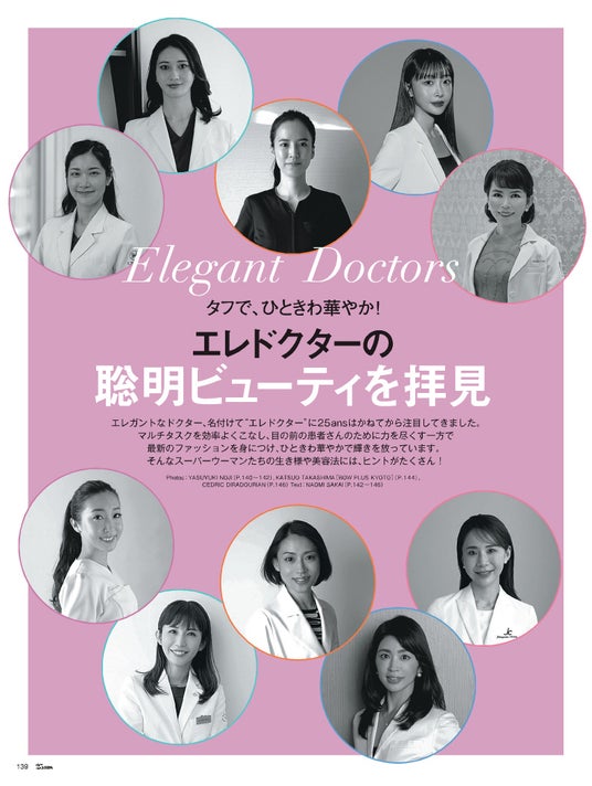 エレガントなドクター、名付けて“エレドクター”に25ansはかねてから注目してきました。マルチタスクを効率よくこなし、目の前の患者さんのために力を尽くす一方で最新のファッションを身につけ、ひときわ華やかで輝きを放っています。そんなスーパーウーマンたちの生き様や美容法には、ヒントがたくさん!
