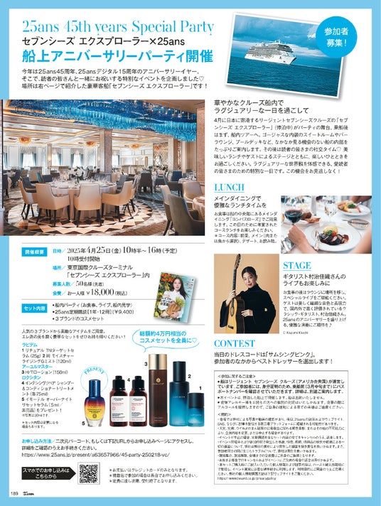 25ans2025年4月号 創刊45周年企画!セブンシーズ エクスプローラー×25ans船上パーティ参加者募集