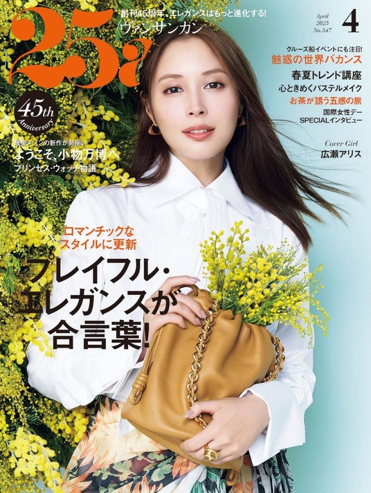 全世代のエレガントな女性たちに支持されるクラスマガジン『25ans(ヴァンサンカン)』(発行:株式会社ハースト婦人画報社、本社:東京都港区、代表取締役社長:ニコラ・フロケ)は、広瀬アリスさんがカバーガールを務める4月号を2月28日(金)に発売します。