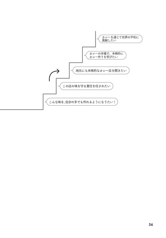 夢のステップという図があります。こちらをご覧いただくとわかるように、重要なのはこの「今日カレーが食べたい!」です。だからこそ、心の声を大切にしてほしいのです。