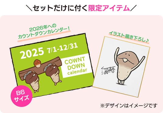 「2026 なめこ日めくりカレンダー」のほか、プロジェクト限定グッズやセットプラン限定特典などをご用意しています。