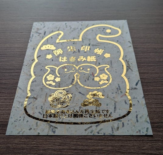 へびさんは弁財天の使者と言われて、お金にご縁があります。この度本物の紙幣を漉き込んだ再生紙(紙幣混抄紙)で作成したはさみ紙をプレゼントいたします。(注意1)