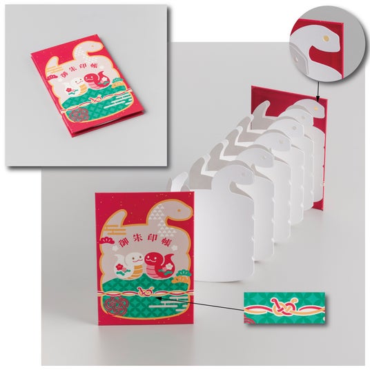もし、干支のへびの形をした御朱印帳があったらいいなぁ~!でも、へびさんだけだと、さみしいかな?、ねこさんと、いぬさんもお創りしました。蛇腹を広げるとたのしい御朱印帳のご提案。