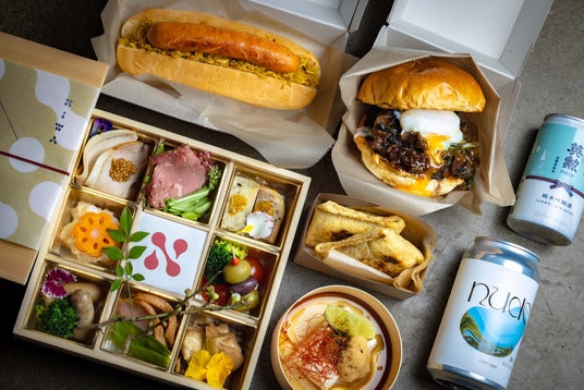 庭プロジェクトの中心となる飲食店「NIWA」では、厳選した京都産の食材やブランドを使用したメニューを提供します。京都産・京都ブランドの抹茶、コーヒー、日本茶、日本酒、クラフトビールなど、多彩なドリンクメニューが揃い、訪れるたびに新しい「京都」の魅力を発見できるラインナップが特徴です。ドリンクに合わせた京都産の食材を活用したおつまみセットも特徴的で、例えばビールに合う「金」、日本酒に合う「銀」、ヴィーガン向けの「禅」など、さまざまな味覚で京都の魅力を楽しめます。営業時間は11時から23時(L.O. 22:30)。