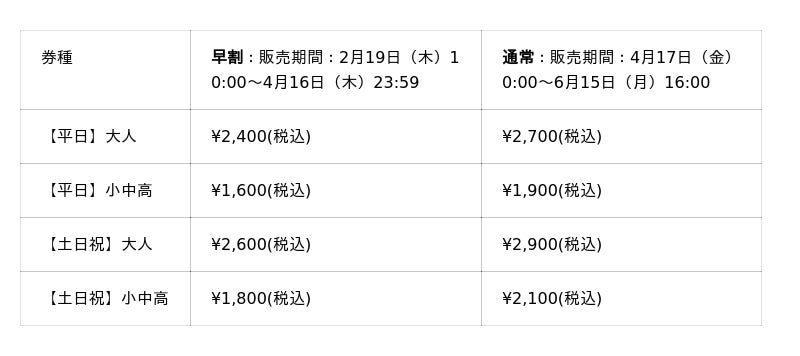 ※主催者の都合により休止または中止した場合を除き、チケットの返金・変更はできません。