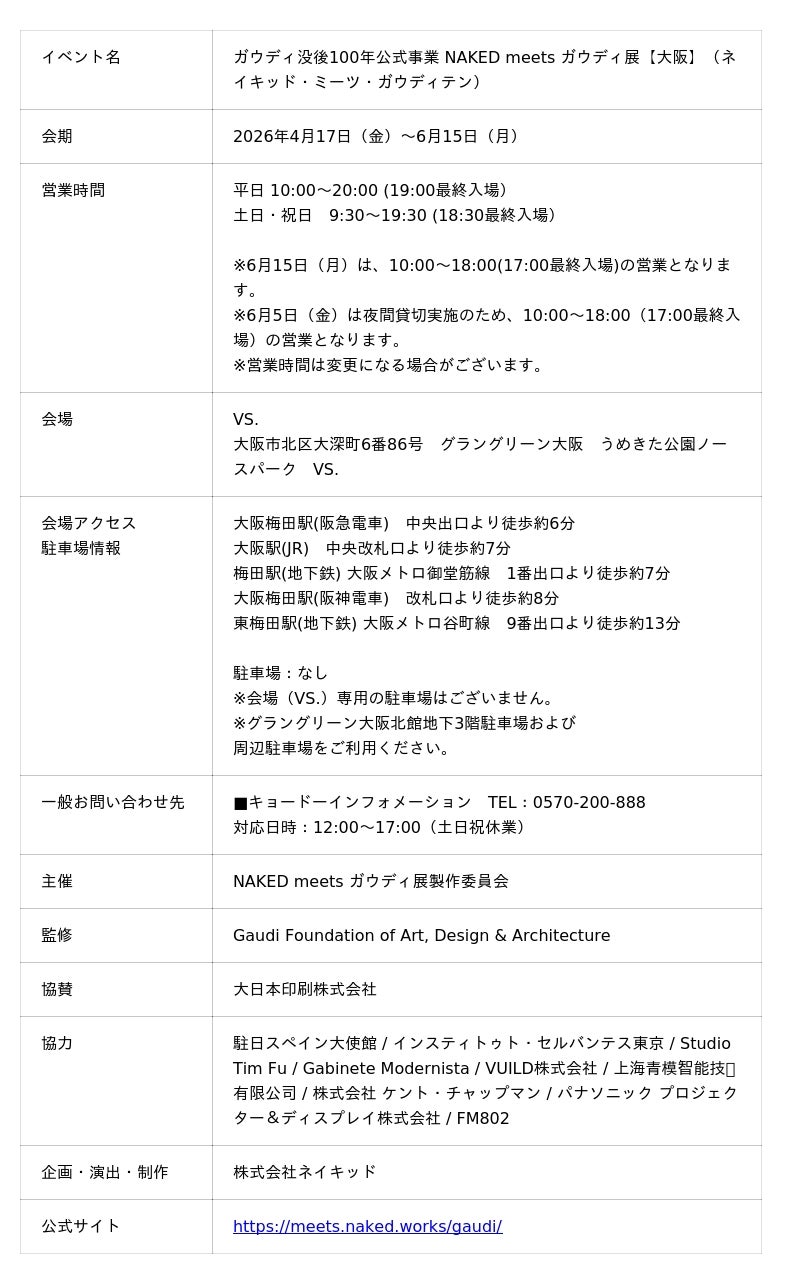 現在、寺田倉庫 G1ビル(東京都品川区東品川2-6-4)で開催中の『ガウディ没後100年公式事業 NAKED meets ガウディ展』は、2月17日(火)時点で累計動員数8万人を突破いたしました。[東京展会期:2026年1月10日(土)~3月15日(日)]なお、混雑緩和を目的として、2月21日(土)より、土日祝に関しては、事前日時指定予約優先入場のシステムも導入いたします。(東京展のみ)