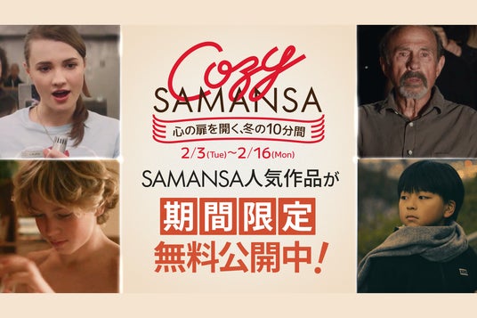 株式会社SAMANSA(本社:東京都渋谷区、代表取締役社長:岩永祐一)は、運営するショート映画配信サービス「SAMANSA」にて、2026年2月3日(火)から2月16日(月)までの期間、冬にオススメの厳選4作品の無料公開と、年間プランが25%お得となるクーポンの販売をする「COZY SAMANSA(コージー・サマンサ)」を開催することをお知らせいたします。