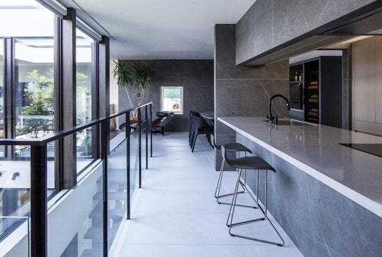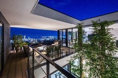 効率的な導線を確保しながらも雑多な部分が来客の目に触れないゾーニングとなっており、中央のライトコートにより建物全体に光が引き込まれる。 ライティングにおいては生活に必要な明るさを十分に確保しつつ、眺望を取り込む大開口窓への光源の映り込みをなくすことでドラマチックな陰影がつくよう計画した。陽が沈むにつれ輝き始める夜景が一面に浮かび上がる。日常でありながらも非日常に身を置ける上質な空間を目指した。