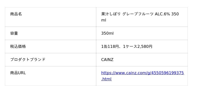 ・果汁しぼり グレープフルーツ ALC.6% 350ml