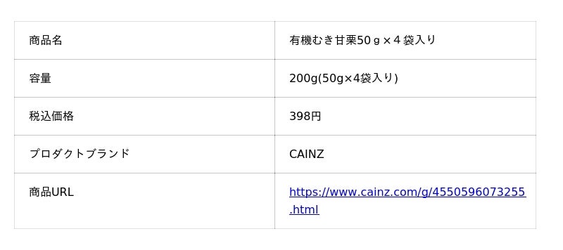 有機栽培で育てられた中国・燕山産の大粒の栗を使用し、ひとつひとつ丁寧に手むきした割れの少ないむき甘栗です。栗本来のやさしい甘みを生かし、そのままでも満足感のある味わいに仕上げました。食べきりサイズの小分け包装で、間食やちょっとしたご褒美にも適しています。