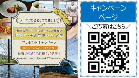 キャンペーンページはこちら「日本の旅、鉄道の旅」メルマガに登録して応募しよう!復路は「サフィール踊り子」で優雅に/伊豆「下田東急ホテル」の旅プレゼントキャンペーンページ