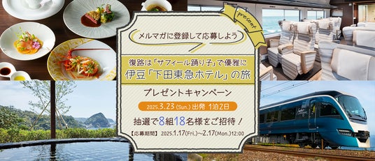 人気観光列車「サフィール踊り子」を利用した伊豆「下田東急ホテル」1泊2日の旅を抽選で8組18名様ご招待!ぜひ、この機会に国内の旅予約サイト「日本の旅、鉄道の旅」メルマガに登録してご応募ください。