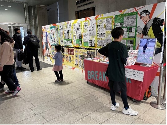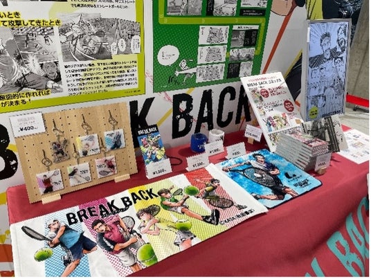 『BREAK BACK』(著 KASA)の漫画カットを使ったテニスの駆け引きや楽しみ方を学べる作品紹介パネルの展示や、同作品コミックスと、テニス雑誌『スマッシュ』に連載されていた同作者の「テニスの本質を知ろう」を立ち読みできるコーナー、ルーセント実業団選手やルーセントテニスクラブのコーチが『BREAK BACK』の作中に登場するテクニックに挑戦した「BREAK BACKチャレンジ」の動画上映、オリジナルグッズ販売などを行いました。