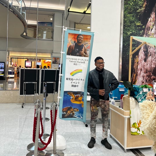 本イベントの一環として3月13日(木)から17日(月)まで開催している、鹿児島空港アートイベントは、鹿児島県の後援を受けながら実施しており、この度本イベントのために来日中のハワイの著名3Dアーティスト Tehrell Porter (テヘレル・ポーター)氏が、3月19日に塩田 康一鹿児島県知事を表敬訪問することが決定いたしましたので、併せてお知らせいたします。