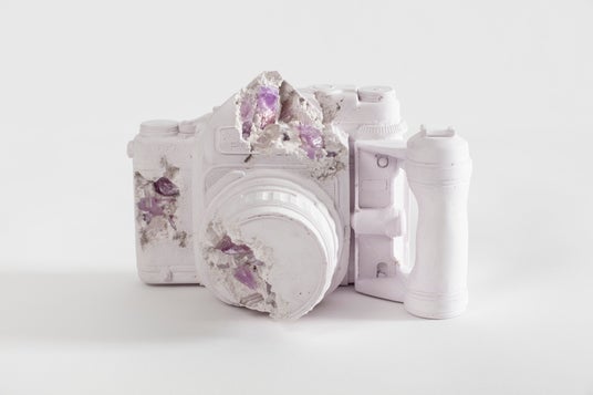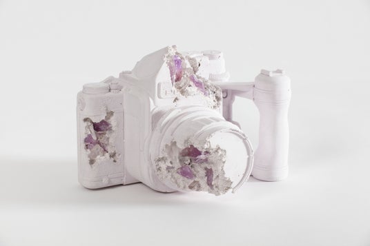 Daniel Arsham, Amethyst Eroded 75mm Camera, 2022.Courtesy the artist and Perrotin. Photo by Guillaume Ziccarelli.