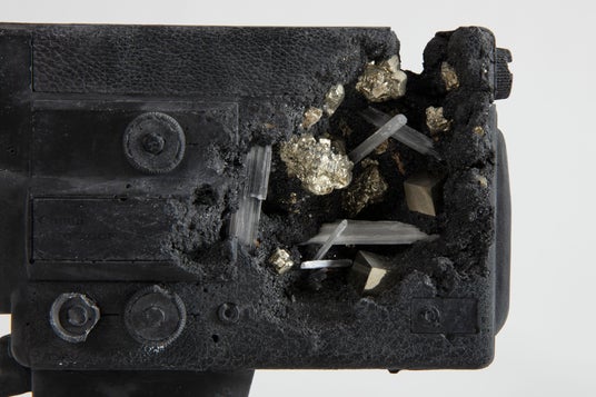 Daniel Arsham, Ash and Pyrite Eroded Camcorder,2022.Courtesy the artist and Perrotin. Photo by Guillaume Ziccarelli.