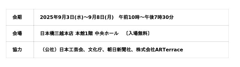 会期:2025年9月3日(水)~9月15日(月・祝)