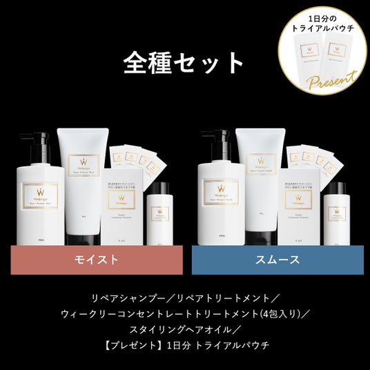 そんなWonjungyo Hairの全商品を試したい方にオススメな商品が登場しました。シャンプーとトリートメントのトライアルパウチがついたお得なセットとなっております。