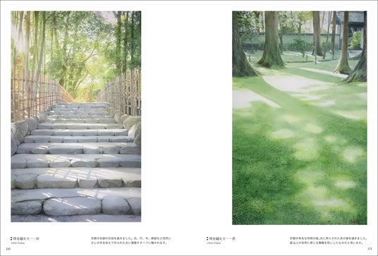 巻頭作品/はじめに/目次/1 画材…主な画材、マスキングインクの種類と使い方の基本、使用している色とパレット/2 空…青空と浮かんだ雲と垂れ込めた雲、オックスゴールを使って雲を描く、夕焼け雲/3 木立…グリザイユ画法で木立を描く、木立のカラーサンプル、葉の重なりとマスキング/4 作品 空と木立を中心に/5 寒暖 木漏れ日 雪…葉陰・木漏れ日の描き方(1)(2)、グリザイユ画法で雪を描く/6 霞…霞のかかった風景を描く、山のラインをスッキリ描く方法/7 清流…(制作記録)水の流れをグリザイユ画法で描く、水を描く/8 作品 自然をめぐる時間そして音