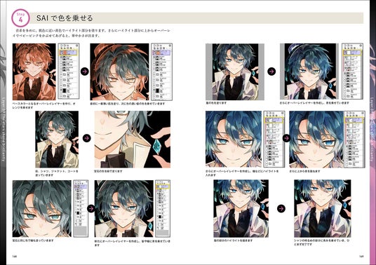 色を塗るときに大変なのが「どの色がいいのか」「光や影の色はどうするのか」「色味の反射も考えなきゃ」と、様々な色の影響も考えて塗らなければいけません。そして、色を変えたいなと思ったとき、他にもあちこち影響が出てきて大変だったり…。これを解決するのがグリザイユ画法。モノクロで陰影を塗っておき、上から色のレイヤーを重ねるだけで、難しいことを一切考えずに色が塗れ、色の変更も簡単です! このほか、グリザイユ画法では弱いと言われる、鮮やかな色合いにする手法も公開。