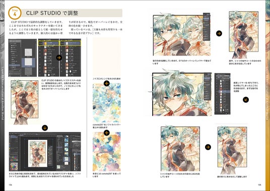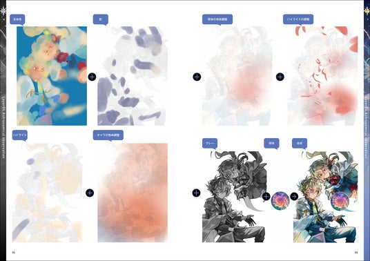 グリザイユ画法とは/簡単な厚塗り/複数キャラでの厚塗り/ヴィネット風グラデ塗り/背景ありの厚塗り/ポスタリゼーション風塗り/水彩風の塗り/アニメ塗り/モノトーン風の塗り/ハイコントラスト風の塗り