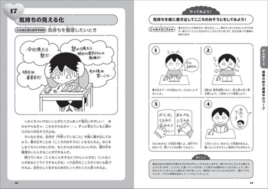 1 左ページでは子どもが不安や緊張を感じる場面を取り上げています。ワークの導入として使えます