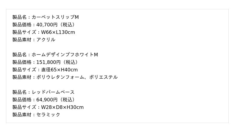 インテリアはオリジナルだけでなく、世界で注目されるイタリアの「Kartell(カルテル)」やオランダの「moooi(モーイ)」の日本総代理店を務め、世界中から家具、照明、モザイク、プロダクトアー ト、ファッションを独自の目線でセレクトし、販売。ショールームを国内外 25カ所に構える。