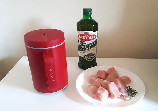 「ていとうシェフ ちびっこ」なら少ない油で完成! ハーブはローズマリーのほか、タイムやバジルもおすすめです。「低温」モードは約82℃、1時間の自動設定です。