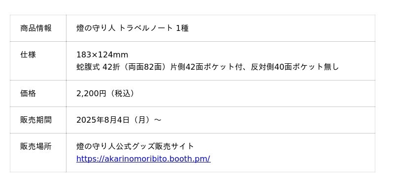 【燈の守り人】オリジナルトラベルノートを発売!