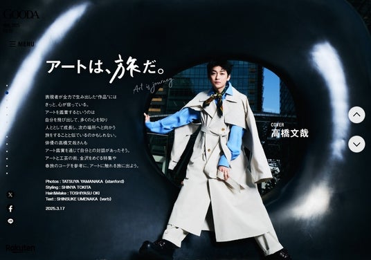 手にするだけで毎日ちょっとハッピーな気持ちになれる。そんな、とっておきを紹介しているライフスタイルウェブマガジン「GOODA」。最新号には、俳優の高橋文哉さんが登場します。
