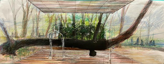 作品では、横に伸びるサクラの木の構造に着想を得て、同じ構造を用いることで“重力に抗う”姿を表現しています。また、制作の根底には『センス・オブ・ワンダー』という感性を大切にしています。樹木も自分も、自然の分身としてこの場所に在ることを感じながら、大人になっても自然の不思議さを忘れずにいたいと思います。