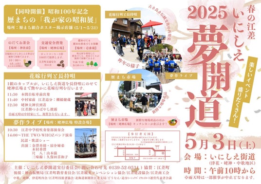 5月3日(土)、江差町内「いにしえ街道」において第30回目となる「春の江差いにしえ夢開道」が、いにしえ夢開道実行委員会主催のもと、開催されます。