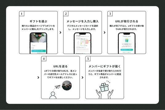 コピーしたeギフトの受け取りURLを、各メンバーの送付先メールアドレスに送ってギフトをお渡しください。