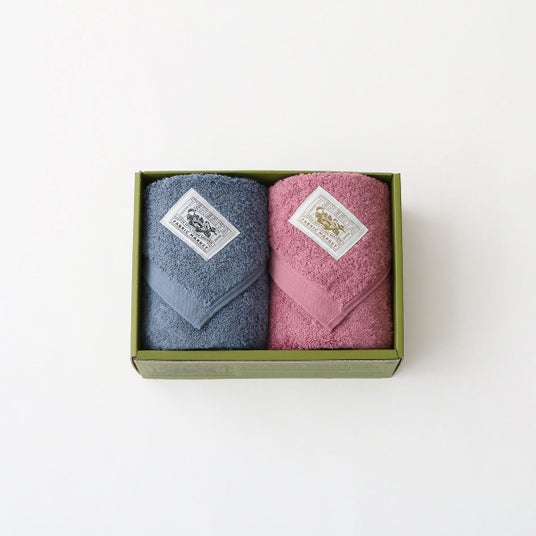 超甘撚りフェイスタオル2枚セット(ブルーグレー・ローズ)