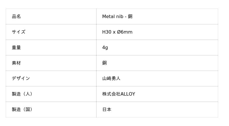 ピンクゴールドのような色から徐々に深い褐色へと変化していく銅。塗装などを施していない純銅を使っているため、経年変化を存分に味わうことができます。錆などに気をつけながらも、育てていく楽しみを感じられるペン先です。これまでの真鍮・ステンレスとあわせて、選べる素材がまたひとつ増えました。