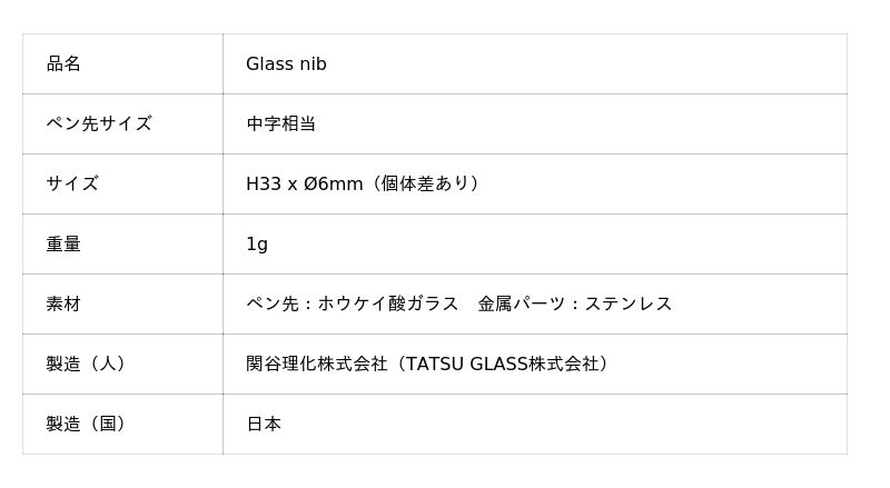 理化学ガラス製作所 関谷理化・TATSU GLASS とカキモリの協業で新しく生み出した Glass nib。職人たちが、ガラスとステンレスのパーツを組み合わせて丁寧に仕上げました。大量生産が難しいガラスのものづくりを、より多くの方に手に取っていただけるようにと作った書く道具です。