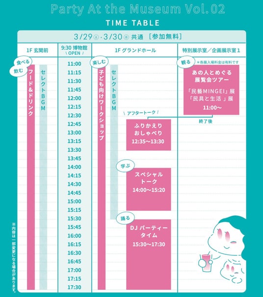 第2回目となる「パム Party At the Museum」は、福岡市博物館で開催中の『民藝 MINGEI』展と『民具と生活』展の2つの展覧会をフィーチャーします。