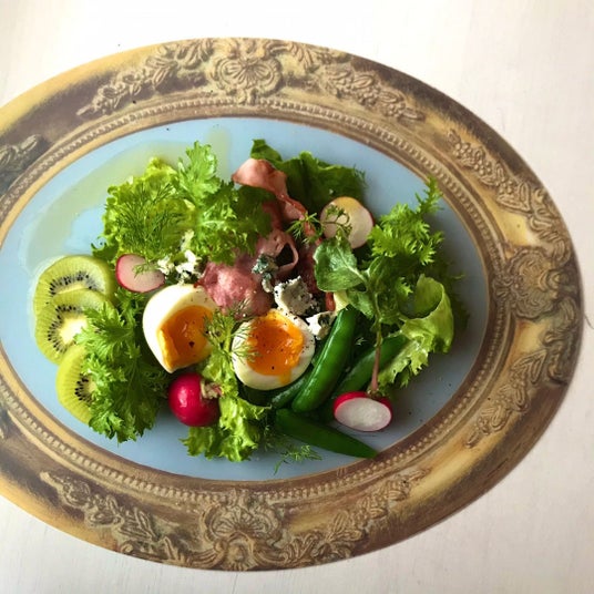 アートフードプレートにサラダをのせて。フレーム効果で料理が豪華に見える