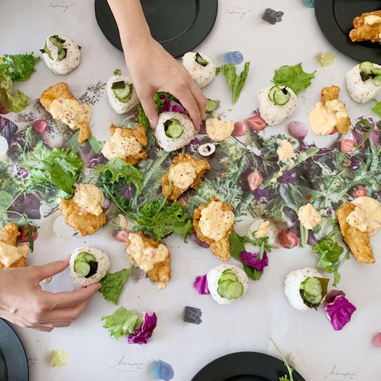 「サラダロードシート」はご自宅で誰でも簡単に、ケータリングのようなインパクトのあるテーブルの演出ができるように、ハラペコラボが独自に開発したオリジナルアイテム。